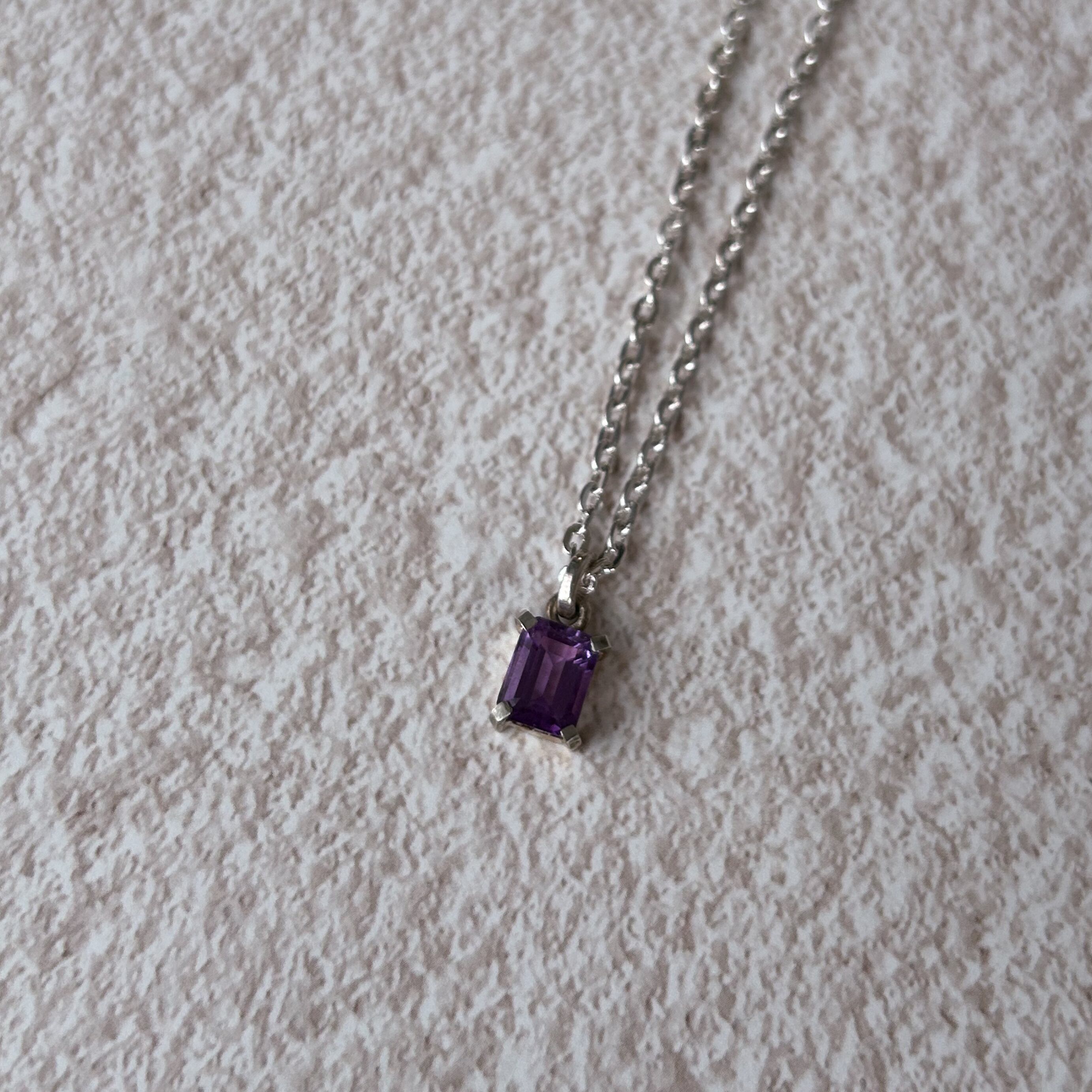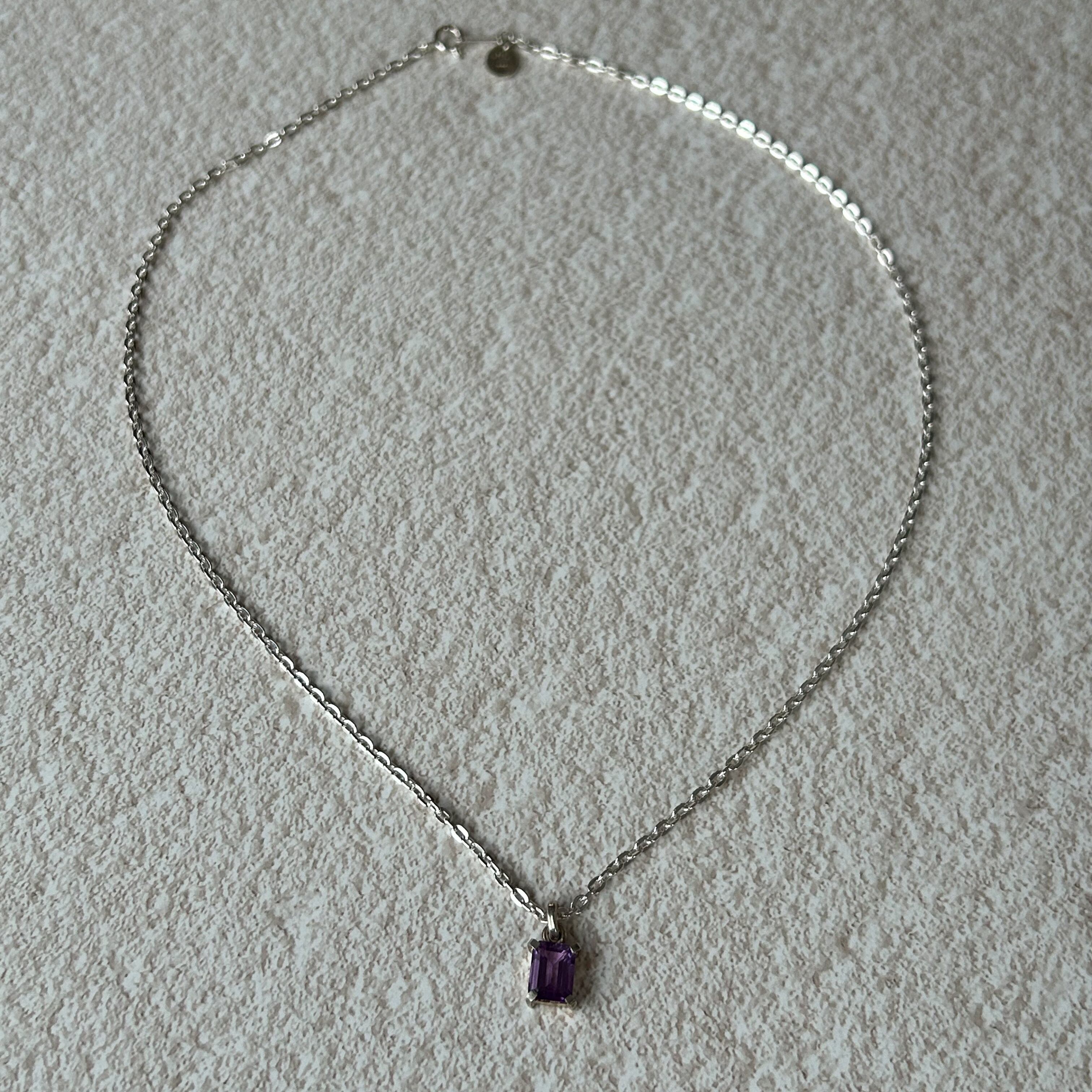 美しいアメジストを使用したシルバーネックレス。シンプルなデザインですが、アメジストの深い紫が首元を華やかに飾ります。